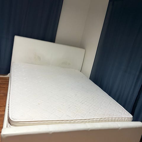 Hyvässä kunnossa sänkyrunko, sisältyy patjat ja sijauspatja.