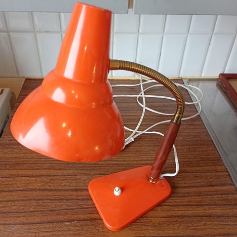 Komea vanhan ajan pöytävalaisin etsii uutta kotia. Toimiva. Maadoittamaton pistoke. Korkeus 61 cm.