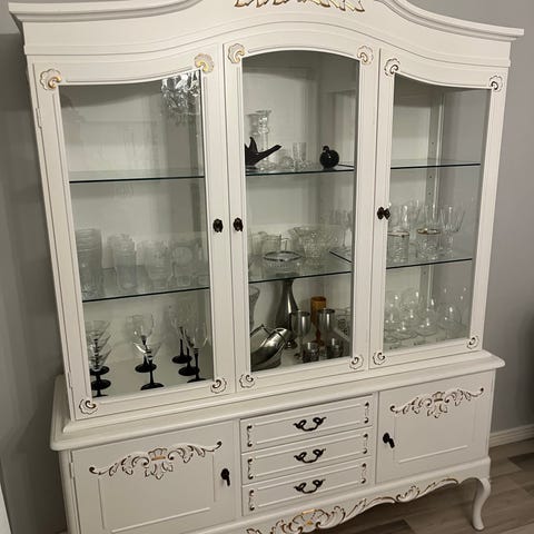 Komea Rokokoo tyylin kirjahylly etsii uutta kotia. Yläosa pois nostettava. Yleiskunto hyvä. Klaffi on valaistu. Osa lukoista ei toimi, mutta oviin asennettu takuuna uudet pidikkeet. Sisusta siisti eikä ole hajuja.