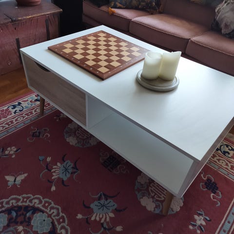 Vaalea koivuviiluinen pöytä/sohvapöytä