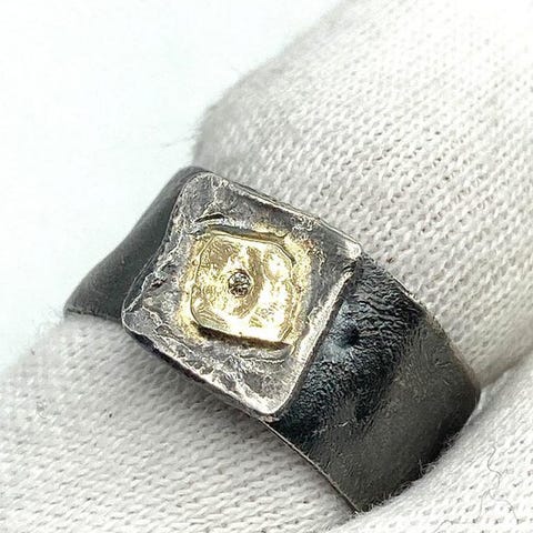 Riipus - 18 kt. Keltakulta, Hopea Timantti (Luonnollinen)