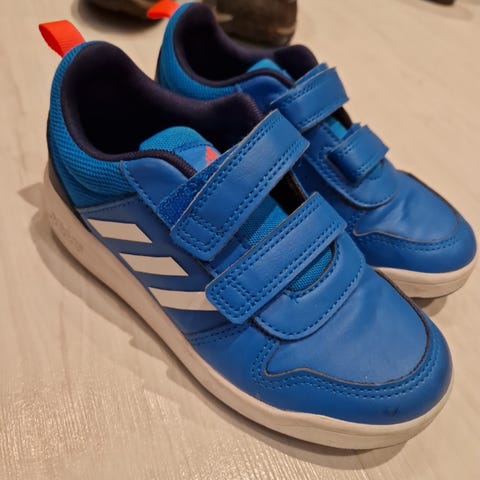 Myydään uudenveroiset, meillä vähälle käytölle jääneet sinivalkoiset lasten Adidas -sisäpelikengät kokoa 31. Kengissä vaaleat pohjat, pitävä tarrakiinnitys sekä irrotettavat pohjalliset.