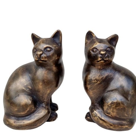 Nämä ovat kaksi ihanaa istuvaa kissaa. Valmistettu pronssista. Hyvin koristeellisia, kauniita koriste-esineitä. Kunkin kappaleen mitat ovat seuraavat (noin):