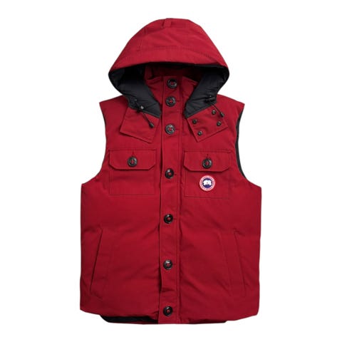 Hieno punainen canada goosen liivi kokoa xs mutta omasta mielestäni fittaa s kokoiselle käytän itse s vaatteita ja tämä liivi sopii hyvin minulle.
