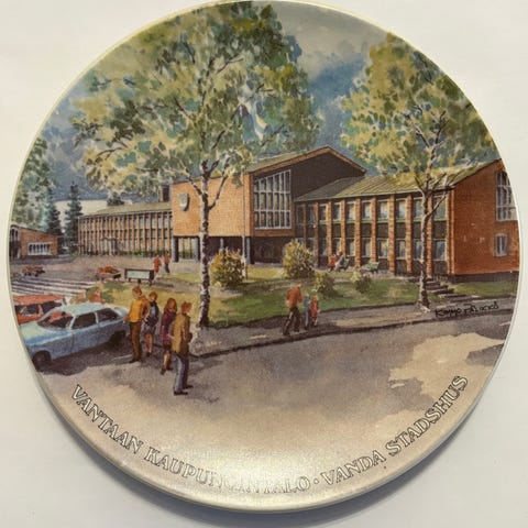 Arabia Vantaan seinälautanen 1989, halkaisija 20 cm.