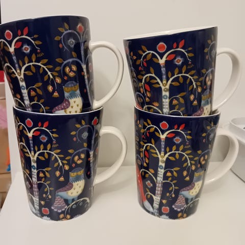 6 mukia, siistissä kunnossa, ei värjäytymiä.