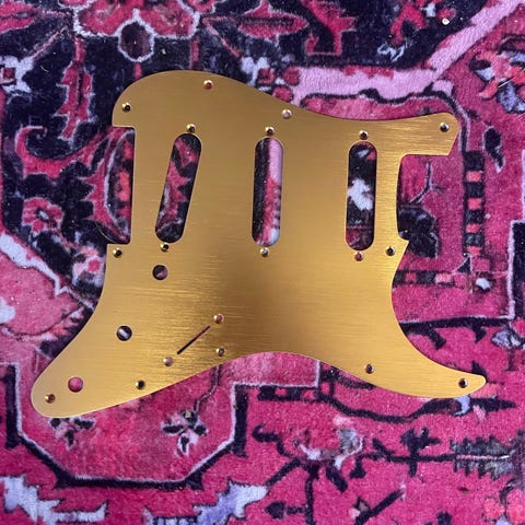 Telecasterin hopeinen pleksi + control plate pakettina. Molemmat uusiia. Materiaalina anodisoitu alumiini. Sopii ainakin Fendereihin ja Squiereihin, luultavasti moniin muihinkin.