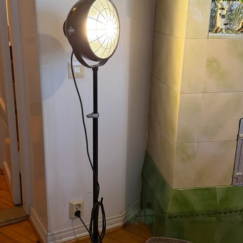 Moottoripyörän etuvaloista tehty lattiavalaisin.