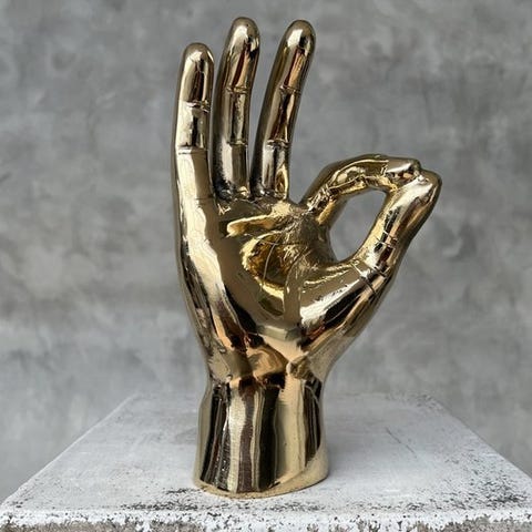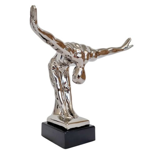 Kaunis taide-esine, suuri koko, valmistettu metallista, matta hiekanvaalean värinen.