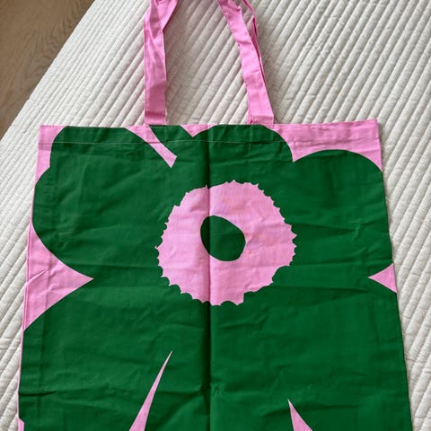 Myydään uusi Marimekon logokassi. Väri: puuvilla,punainen,viininpun.