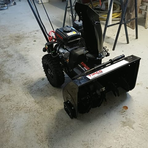 Myyn uuden, kokoamattoman lumilingon laatikossa. Traktori on kuitenkin parempi vaihtoehto isolle tontillemme.