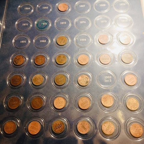 27 kpl 1 pennin kolikoita 1866,1883,1888,1891,1892-1917 (ei 1903 iso 3)