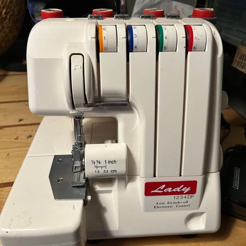 Toimiva babylock saumuri, pystyy ompelee 2, 3, tai 4 langalla. Mukaan tulee lankaa, neuloja. Olisi hyvä käyttää perushuollossa. Ajoitus säädetty 2025 kesällä, mutta tiki. Pituus tuntuu hieman lyhkäiseltä mutta se ei häiritse ompelua.