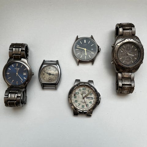 Vanhoja käytöstä pitkään pois olleita rannekelloja 8 kpl.