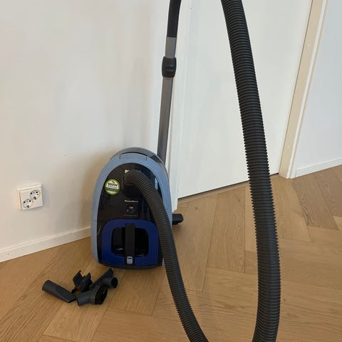 Volta EasyGo pölynimuri sininen. Imurissa on letku ja metallinen teleskooppiputki. Vain nouto Helsingistä.