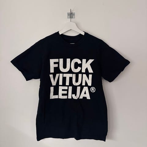Vitunleija verkkarit miesten koko M mustassa värissä. Printti hyvässä kunnossa.