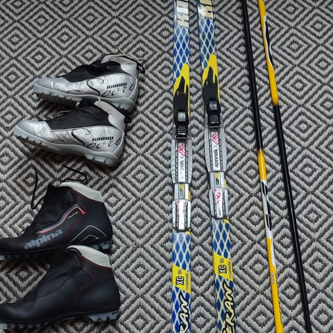Lasten suksipaketti / hiihtopaketti sisältäen sukset, monot ja sauvat