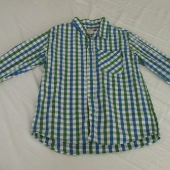 - Turkoosi/tummansini/valkoruudullinen, pienet ruudut. Varanappi kiinni