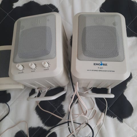 Pienet kaiuttimet, uudet. yksi johto 3,5mm molemmille.