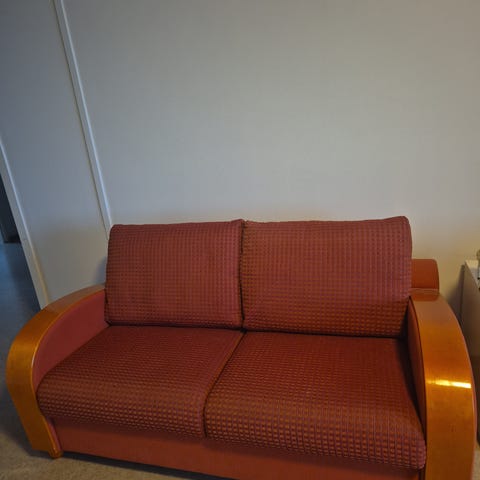 Harmaa avattava vuodesohva mekanismilla. Päällä sininen suojakangas. Koko 170 cm x 80 cm x 78 cm, istuinosa 60 cm. Avattuna koko 150 cm x 193 cm. Vuodevaatelaatikon koko n. 75 cm x 140 cm (sisämitta). Sohvaan kuuluu myös harmaat käsinojatyynyt. Vain nouto.