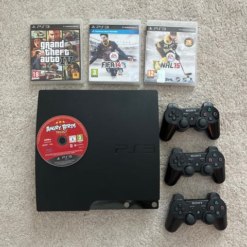PS3, ohjain, paljon pelejä, sekä Move-ohjaimet