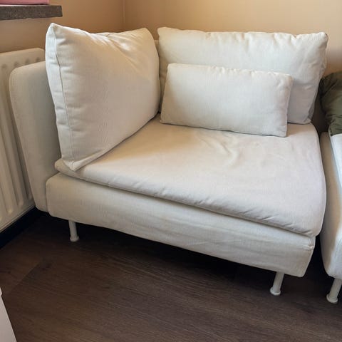 Käyetty söderhamnin kulmapala, muutossa päälliseen jäi kuljetushihnasta pieni lika mutta lähtee varmasti pesussa. Uuden sohvan tilalta kulmapala pois.