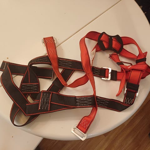 - Selän D-lenkissä jatkohihna helpottamaan turvaköyteen kiinnittymistä