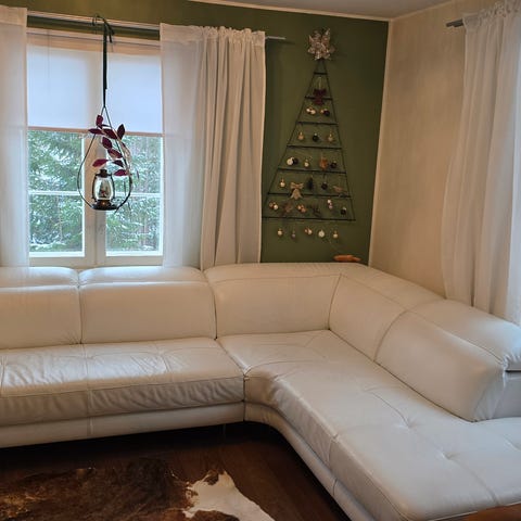 Sohvan takana kissan raapima jälkiä, mutta jäävät piiloon. (Huomioitu hinnassa)