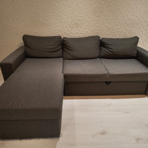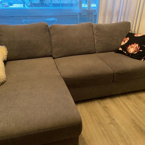 Yhden sohvatyynyn vetoketju hieman irti saumasta, helppo korjata halutessaan eikä vaikuta käyttöön.