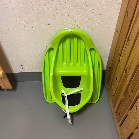 Käytetyssä, mutta ihan hyvässä kunnossa oleva vauvan pulkka. Turvavyötä ei taida olla enää tallessa.