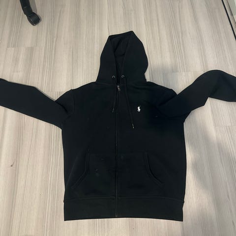 Ralph Lauren Polo sininen miesten huppari, koko S. Valmistettu puuvillasta. Hupparissa on vetoketju ja huppu, sopii arkikäyttöön.