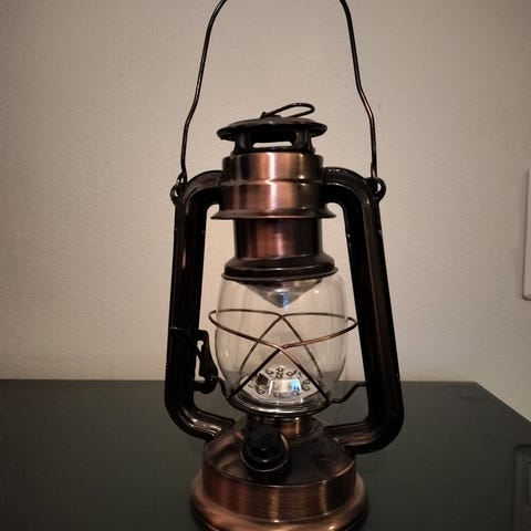 Myrskylyhty led-valolla valkoinen, sisältää käytetyt paristot. Valaistuksen määrää voi säätää portaattomasti.