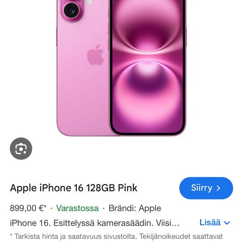 Apple iPhone 16 puhelin, 128 GB tallennustilaa, musta väri.