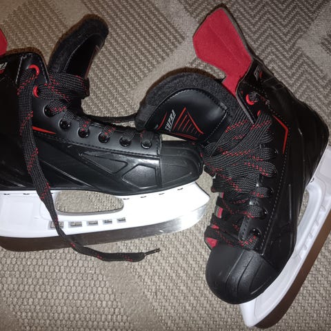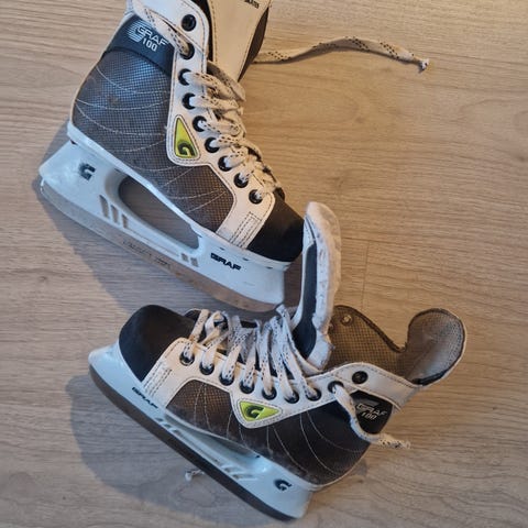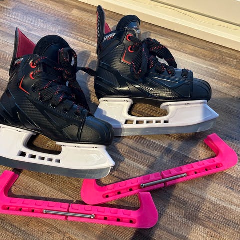 Marraskuussa teroitettu, jonka jälkeen ei olla näillä luisteltu. Ostettu aikanaan uutena, kärjissä jotain osumia. Yleisilme kuitenkin mielestäni siisti. Nauhojen päästä muovi irronnut ja luistimet nimikoitu sisäpuolelle lapsen nimellä, jota vedetty tussilla siististi yli. Näistä en löydä kokolappua.