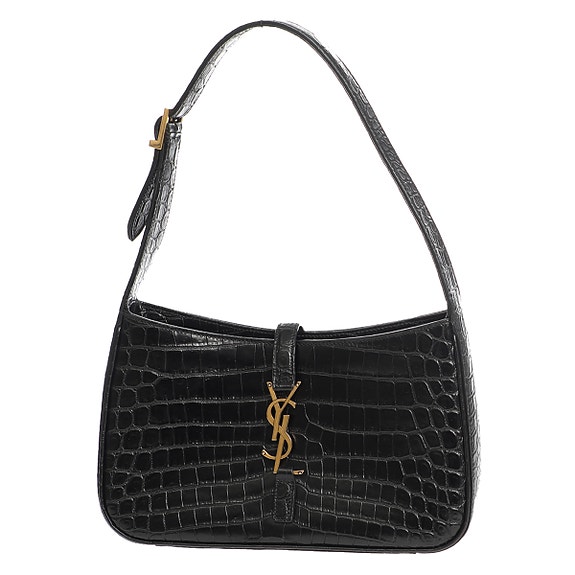 Laukku on varustettu kaksinkerroin menevällä ketjuhihnalla, joten sitä voi kantaa sekä olalla että crossbodyna. Muutoin pelkistetyn ilmeen kruunaa etuosan ikoninen YSL-logo.