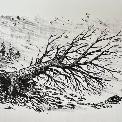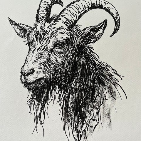 Mustekynällä piirretty paksulle vesiväripaperille. Koko: 34,5cm x 34,5cm.