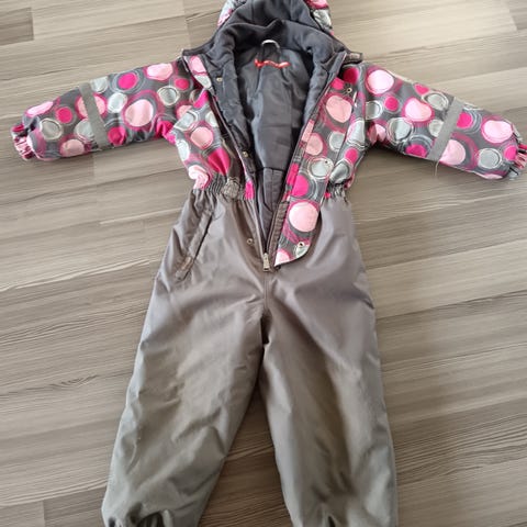 Travalle toppahaalari, koko 104. Ei niin paksu kuin reiman, sopiva kevättalven vaihteleville keleille. Pientä kulumaa polvissa, pepussa. Hyvä päiväkotiin ym pihaleikkeihin. Toridiili tai nouto Lempäälä, Pirkkala