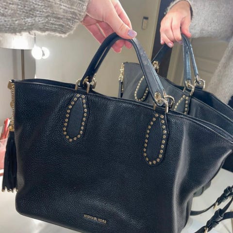 Michael Kors nahkainen naisten laukku mustassa värissä. Laukku on valmistettu nahasta ja sopii naisille. Siinä on säädettävät olkahihnat ja metalliyksityiskohtia. Laukussa on tilaa arjen tarvikkeille ja se sopii monipuoliseen käyttöön.