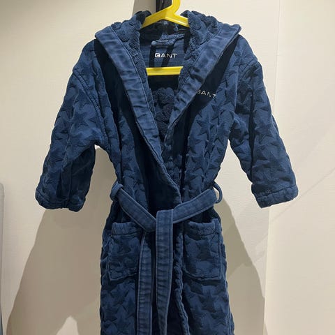Gant kylpytakki n. 80cm (mitattuna kaulalta helmaan). Hihan pituus n. 46 cm. Koko 8-vuotiaalle. Hinta 40€.
