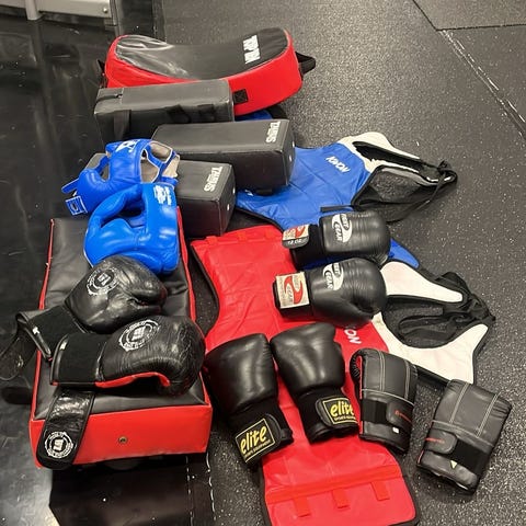 Seinään kiinnitettävä nyrkkeilylaite, jossa musiikki. Sisältää myös hanskaparin.