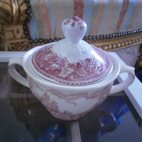 Arabia Sininen Maisema sokerikko. Pikkukruunuleima.