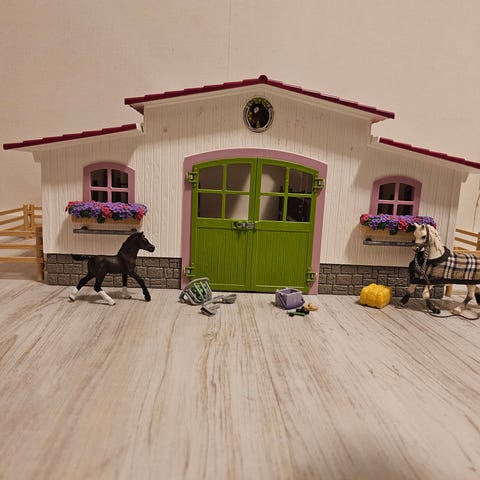 Hyväkuntoinen schleich talli joutaisi seuraavalle leikkijälle.