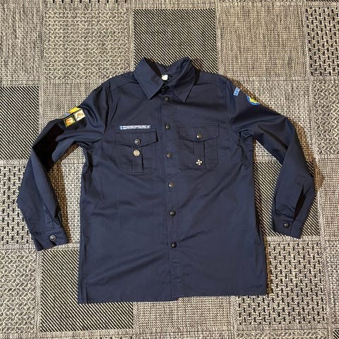 Yhdellä muutamasti käytössä ollu partiopaita kokoa XL.