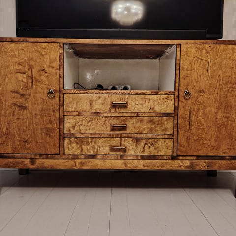 Alaosassa matala laatikko. Käytön jälkiä on. Avainta kaappiin ei ole.