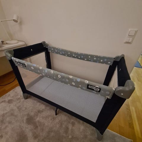 Matkasänky koottuna näkyy nettisivulla, josta myös ilmoituksen ensimmäinen kuva lainattu: https://www.lastentarvike.fi/vauvalle/matkasängyt/emma-matkasanky-60x120cm.html