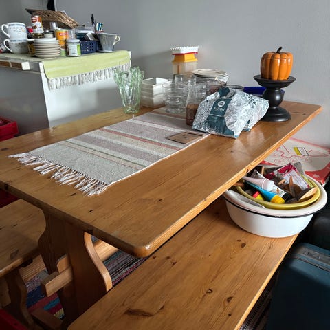 Pöydän lakkapinnassa pientä naarmua.
