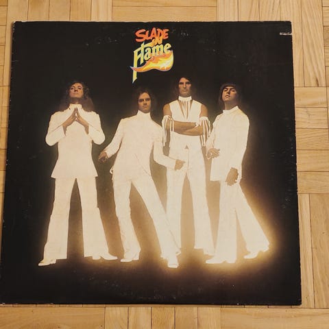 LP 1974 Slade in Flame Deluxe-painos 2442126 England, levyn yhdellä puolella pieni vaalea naarmu (näkyy viimeisen kuvan alaosassa). Nouto/postitus.
