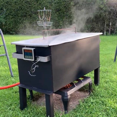Siesta merkkinen savustuspönttö/Savustuslaatikko. valmistettu ruostumattomasta.