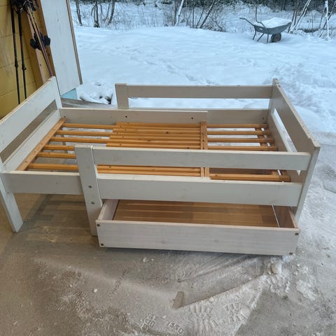 Hyväkuntoinen sänky joutaa meiltä seuraavalle. Pientä kulumaa varmasti löytyy mutta yleisilme siisti.
