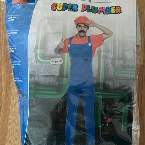 Myydään Super Mario -naamiaisasu noin kokoa 130 cm. Mukaan hattu ja viikset.